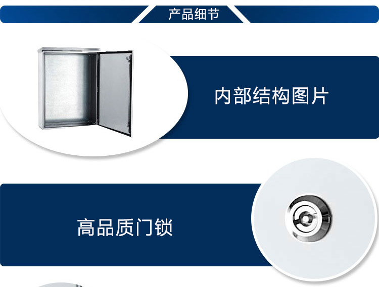 1、明裝不銹鋼配電箱采用304不銹鋼板材及優(yōu)質(zhì)配件制造。南域為您展示電箱,配電箱,低壓配電箱的內(nèi)部結(jié)構(gòu),采用優(yōu)質(zhì)配件制造。