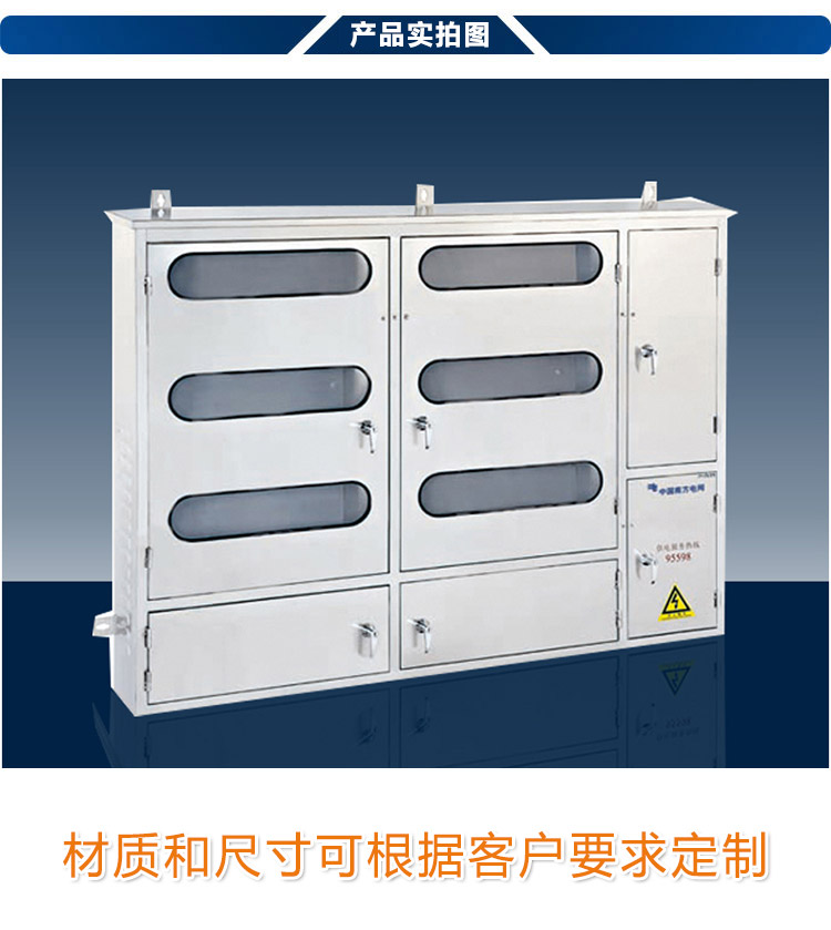 產(chǎn)品材質(zhì):6表位電表箱采用優(yōu)質(zhì)不銹鋼板材制造