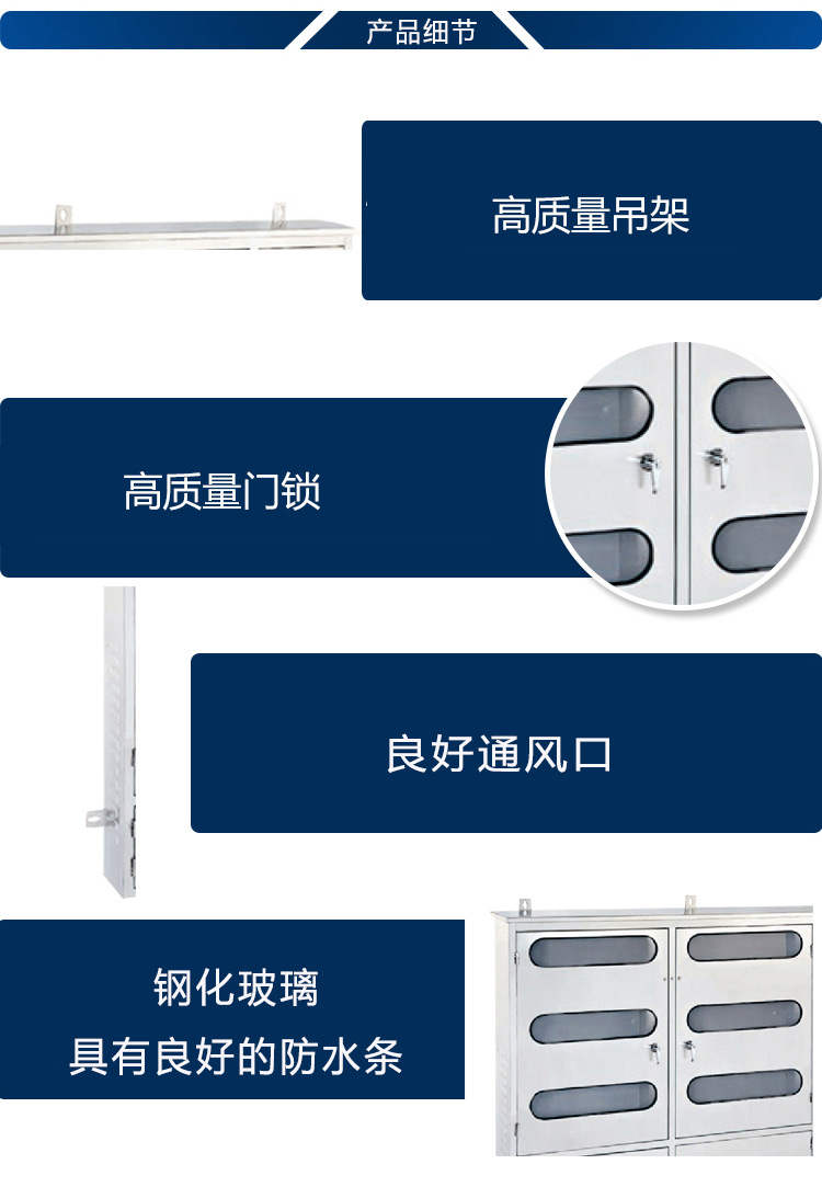 4、工程品質(zhì):更好的工業(yè)設(shè)計,渾然一體的結(jié)構(gòu);6表位電表箱采用優(yōu)質(zhì)不銹鋼板材,經(jīng)酸洗、硫化防銹處理后覆高亮度白室外專用粉;表面光潔、不粉化,值得信賴。